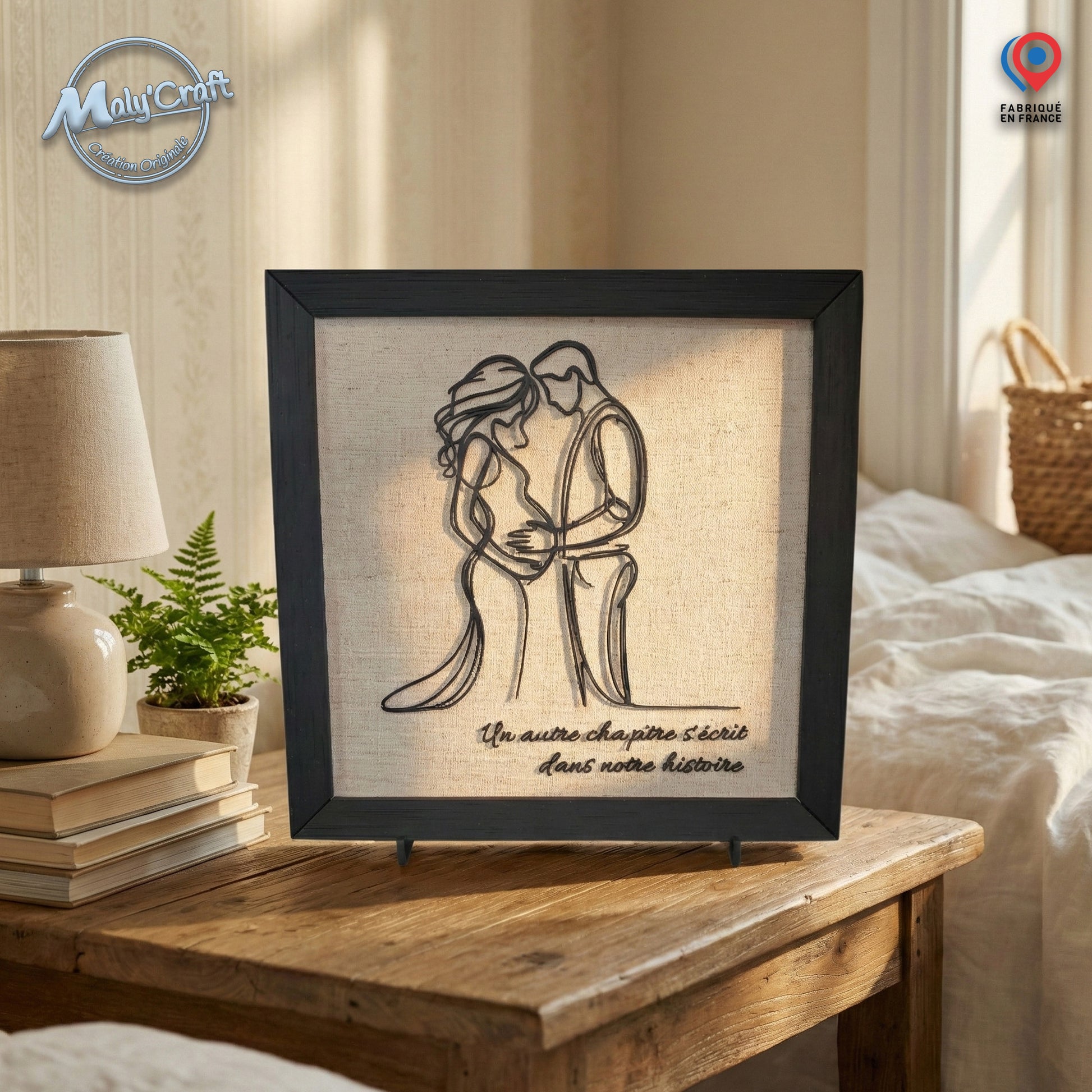Capture the nine most magical months of a lifetime. This unique frame combines the modernity of 3D printing with the timeless elegance of natural linen. Available in a Minimalist version (design only) for a clean, simple look, or in a Message version for an unforgettable pregnancy announcement. ✨